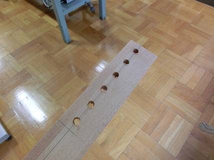 穴の縁ぎりぎりで縦びきをしてケーブルを差し込む溝を作る。