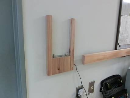 一応後から簡単に取り外せるように、下を引っかけて、上側に打ち込んだ釘と金具を針金で固定するような設計にした。