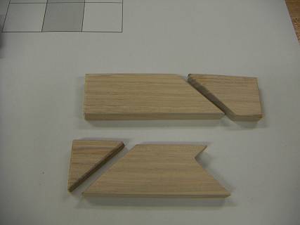 45度の切断を2回やってから、一番難しいのはこの部分でしょう。目的や課題は持たせやすいが、初めてののこぎり引きでやらせることのできる内容ではないかしら。
