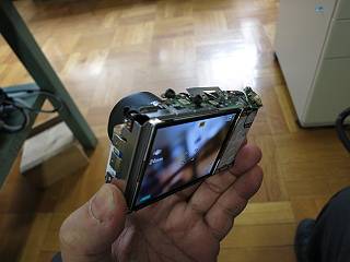 このごろ、画面に黒いシミが出るようになってしまった。撮影した写真にも写っているのでCCD(cmos?)に埃が直接着いたのだろうと思って修理に出した。