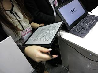 ちょうどこの日に発表となったソニーの新しいe-inkのリーダー。黒山の人だかり。
