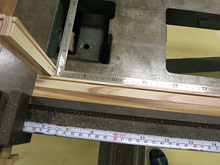 次は留めで接着。マイタゲージを45°にして切断。片側やってから、内側の長さでそろえて4本同じに切断。