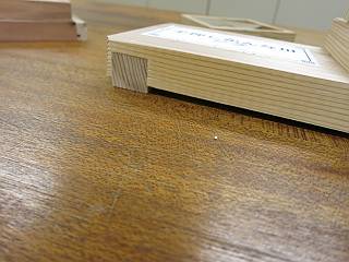 きちんと45°が出ていないと隙間ができるので、捨てる木ぎれを切って確かめる。(まあ、これはどんなときもやるべき)