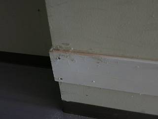 台車で多量の文書を運ぶ機会はよくあるので、またぶつかってしまうことが考えられるので、木の板をガードのように貼ることにした。