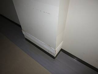 荷物を運ぶ際に、台車をあててしまった穴だと思われる。