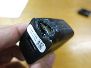 ACアダプタ(5vのコンバータ)が溶けて穴が開いていた。