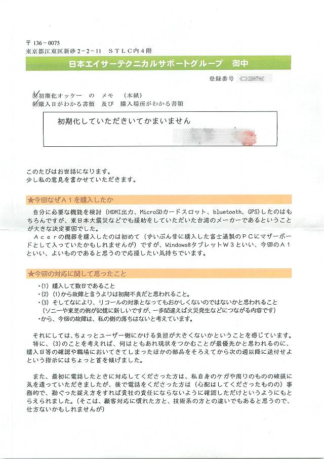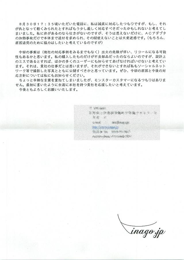 さすがに,日本のメーカーのような対応は無理なのかな。まあ,安いものだし・・・・