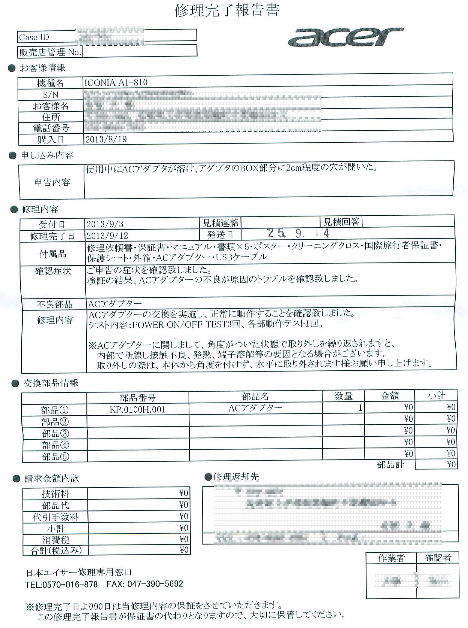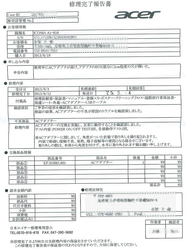 結局,ACアダプタの個体不良だったという判断かな。他の人には伝えなくてもいいのだろうか。