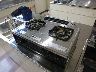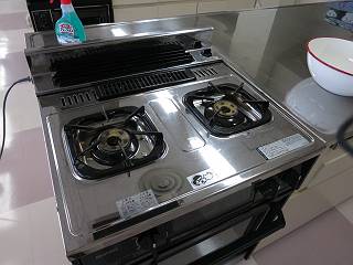 やはり前の方に設置してあったガスレンジは使う頻度も高いので,バーナーが少し汚れている。