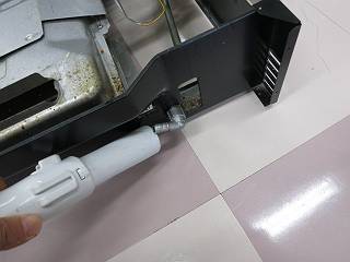一通り,ゴミを吸い取った後ガスのプラグから掃除機で逆に吸ってみる。
