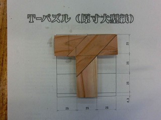 自分の卒業した大学で冬期講座で材料加工の講師として呼んでいただいた。時間も3時間ほどだったので「T−パズル」を作ってもらうことにした。