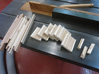 前日に材料を準備。今回は8mm厚のスギ材で幅は25mm。