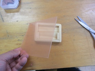 というわけで,大学で作ったケースを元に蓋を考えることにした。使うのは薄いPET材。