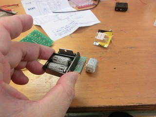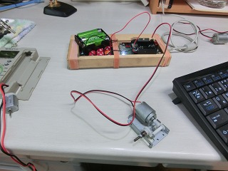 単5電池は古いものだったので,もう使えなかったため,ニッケル水素3本で3.6Vの電池ボックスを別につないで使った。