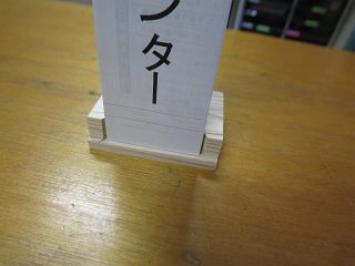 作成したのはこんな感じ,台座を作って溝を切り,差し込んで安定させる。
