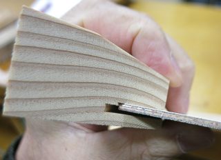 合板を入れる溝を2段につくって,上側の隙間は紙(またはラミネート加工後のA4紙)が入るようにした。