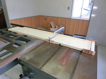 丸鋸刃を交換して,ホームセンターで買っていった2×4材に溝を付ける。