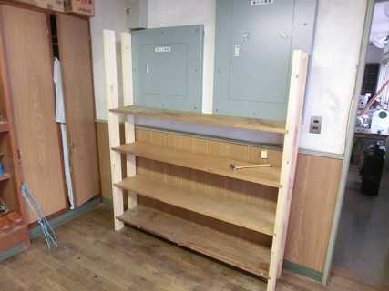 前の学校で職員室を改装した際に,壊した棚から外して取って置いたラワン板を持ち込んだ。