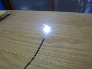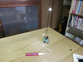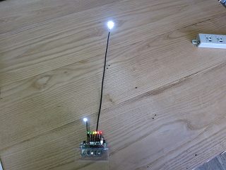 照明用の超高輝度LEDも13Ωの抵抗を介して明るく点灯させることができる。(100mA程流れた)