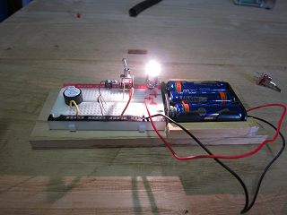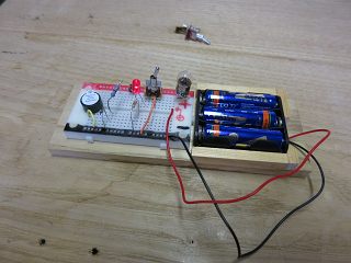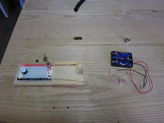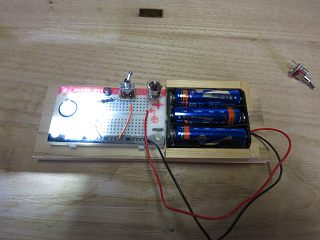 前回からの大きな変更は,電源(電池ボックス)からの供給を直接ではなく,豆電球を直列につないで見たこと。