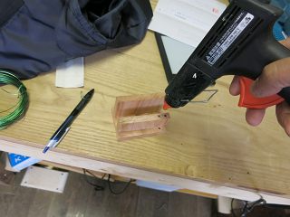 早く終わった生徒向けオプションで,鉛筆立て用のアルミ針金をつけてみたところ。