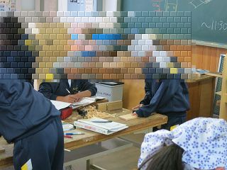一つの教室で,かんなの名称や使い方をノートにまとめる生徒,かんながけをする生徒,自動かんなで上面を削りに来る生徒が混在している状態。(自分は自動かんなに張り付いている)