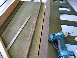取り外したところ。上だけでなく横もかなり削れていた。この部分は反りが出にくいラワン材を使うことにした。