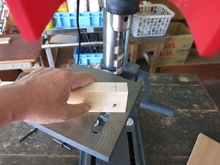 可動部は、ヒンジではなく、ショートビットを使って開けた穴に、丸棒を入れて支点にした。