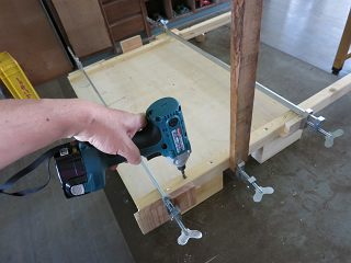 今回は、ほぞにはせずに溝と木工ボンド、コーススレッドで締結することにした。