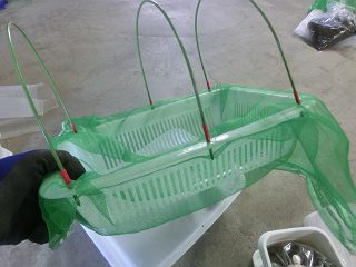 100円ショップの水切りかごにタマネギネットをかぶせ、針金で柱を作る。(すべてやっていただいてあった)