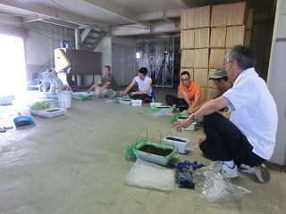 午前中1時間ほど講義を受けた後、実習。500円の材料費で全てお膳立てしていただいてあった。