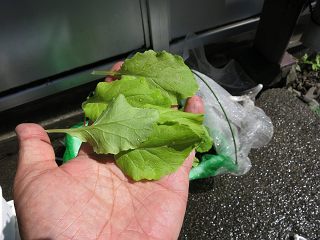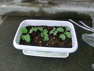 播種から2週間後の姿。そろそろ大きな葉を切って食べてみる。