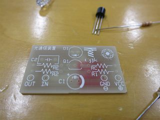 最初は電波の可視化実験装置。といっても、LEDにダイオードをはんだづけするだけ。