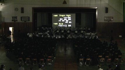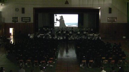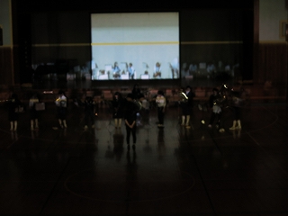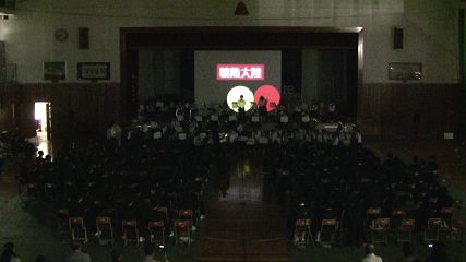 本校所有の3000ルーメンは超単焦点なので、体育館の後から使うわけにはいかなかった。