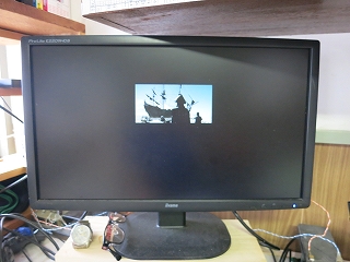 ビデオ映像、スクリーンいっぱいになるように位置決めすると画面上ではこんな感じ。解像感も問題なかった。