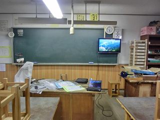 どこに設置しようかと悩んだが、あまり中心からずれると使いにくい。黒板用の蛍光灯の前に置くことも考えたが、教室の蛍光灯が邪魔で見にくい。