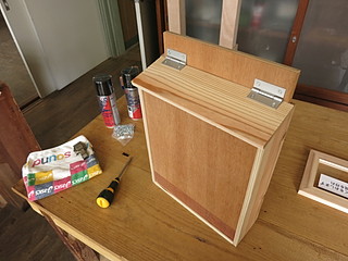 蓋はかっこわるいけれど上側にヒンジをつけて開閉できるようにする。