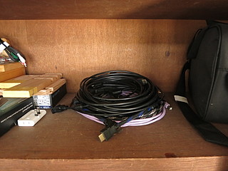 主にPC用の物で、5mのHDMI、VGA、USBはよく使うのに加えて、電源ケーブルもケースから取り出すよりも別に持って行った方が早いのでよく使う。