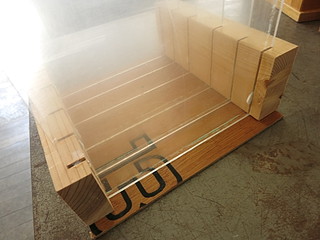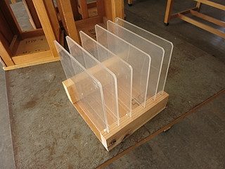 毎度の中古5mm厚アクリル板。まだまだたくさんある。余っている板に溝を入れてざっくり止める。