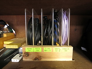 棚に重ねて置いてあったのだけれど、取り出すときに他のケーブルとからんでしまうので、独立して入れておけるものをつくった。