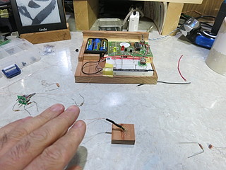 タッチセンサースイッチ、2.2MΩをつかったが、こちらはしきい値がなかなか微妙なのでプログラムを差し替える必要があった。