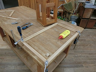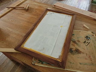 賞状額などと違って、後の板は取り外さないので、木工ボンドで接着。