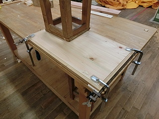 ヒノキ板を接合して後の板にする。