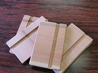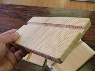 スギの板を同じ大きさに切って、溝を入れただけの簡単なもの。