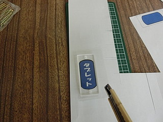 透明の梱包テープでラベルを貼り付ける。