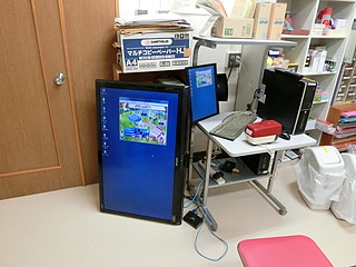 サイネージ用には縦の方が良いかなと思って、近くに置いてセッティング。