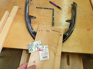 鉄製のアングルを使って溶接して作ることも考えたが、とりあえず木材で様子を見て見るべくキャリア用のフレームを外す。