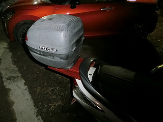 鍵付きで、ヘルメットも入るので便利に使えそう。(シート下にもヘルメットが入るトランクがあるが、後ろ側も有効活用出来そう)