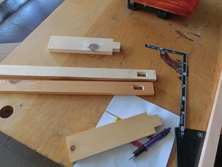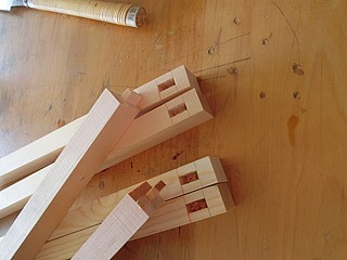 当初はホゾ組でテーブルを増設するつもりで作り始めましたが、隙間に作るので脚が邪魔になることを考え、既存のテーブル脚に増設することにしました。