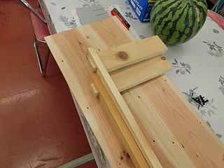 その際に、もう少し高い位置に置いてあればとりやすいのにと言う要望を受けて、夏休み終わりの工作でテーブルを作りました。